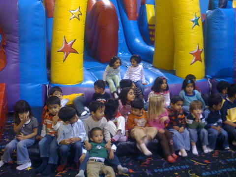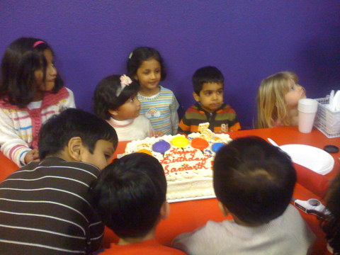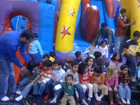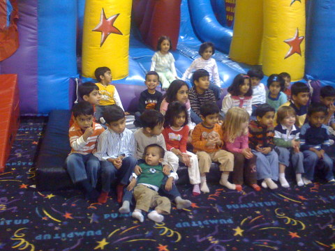 Jan 11th,  2009 - Today is my friend Samarth's third birthday party. He celebrated his party at a new place called "Pump It Up". This place had a lot of inflatable rides and we all had a lot of fun, both kids and adults. My dad was not feeling very well and so only Mom and I went to this event. We had a lot of fun and at the end we had some cake and pizza. It seems to be birthday season, in a couple of weeks it will be Nirali's first birthday and then my 3rd birthday as well. |