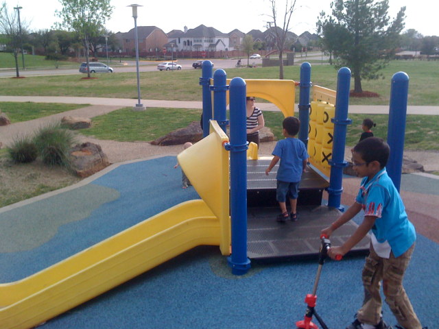 | Â | 22nd Mar, 2009 - Its spring time and the weather is quite pleasant in Dallas so my parents decided to take me to a new park in Las Colinas area called the Mustang Park. The Dallas area is filled with parks and this is one of many in the area. It has a few slides and lots of place to run. Since it was a Sunday evening, there were lots of kids around and I had a lot of fun. I ran around for about an hour and my parents decided it was time to head home. Bet, I am going to fall asleep quickly tonight. Â |