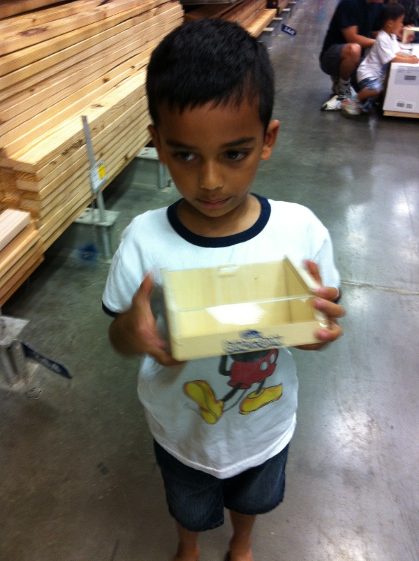 | | Apr 28, 2012 - Spring is here and today's Lowes Build and Grow was to build a terrarium. Now, isn't that word a tongue twister. What is a terrarium, you ask? A terrarium is a small area, usually enclosed so that we can observe plants or animals growing. We built a small terrarium so that we can grow and observe a plant. The bottom, back and two sides of the terrarium are made of wood but the front and the top were made of see-through plastic so we can do the observation. Since it was a box, it was really simple to do. We just had to hammer about 10 nails, thats it. It was probably the fastest I have finished my build and grow project at Lowes. Once I go home, I will fill it up with mud and watch something grow. As usual, the nice ladies at the Lowes of Carrollton gave my patch and a sticker. My Dad had to buy a few things which we did and then proceeded to the Earth Fest in Coppell. |