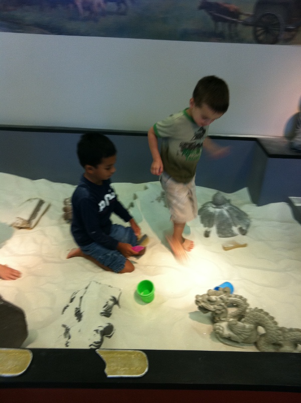 Aug 15th, 2011 - First, I would like to wish all my family and friends from India a very happy 64th Independence Day. My parents have been thinking of taking me to see the Genghis Khan Exhibit which has been at the Irving Arts Center in Irving TX. Irving is the city next to where we live so it was a short drive to get to the Arts Center. On Monday, everyone gets in at Kids prices so we got all tickets for $8 each. The exhibition has a lot of information about Genghis Khan and the dynasty he created. I found out his real name was Temujin and that he called himself Genghis Khan in 1206. He was born in 1162 and dies in 1227. Inside the exhibit it was quite cold and we had to wear a sweater to go in. They have to keep it cool to protect some of the exhibits which are over 800 years old. We saw clothes, knives, arrows, musical instruments, jewellery and many other things in the exhibit. One of the attendants was nice enough to let me play with a toy catapult and he also put the warrior's armor on me. At the entrance, we were given a card with the name of someone from Genghis Khan's time. The exhibit had kiosks all around and we could find the information about these people. The card I got was called Sabrio. At the end of the exhibition was my favorite part, the Sandbox. It has brushes, shovels and things from Mongolia. I dug and found a status of a laughing Buddha. I also found a Rakhee too. Guess Genghis Khan had a sister. Finally I got a Mongolian paper hat. I had a lot of fun today. Last week before school starts. |