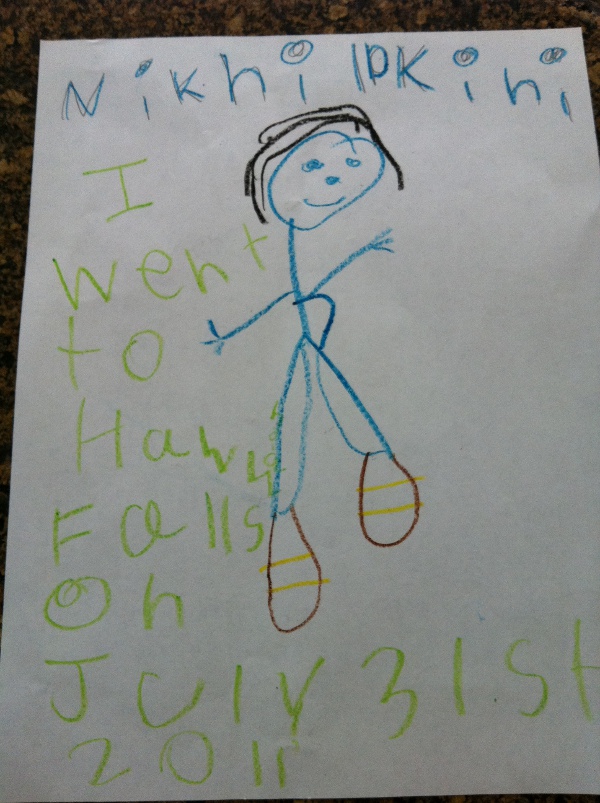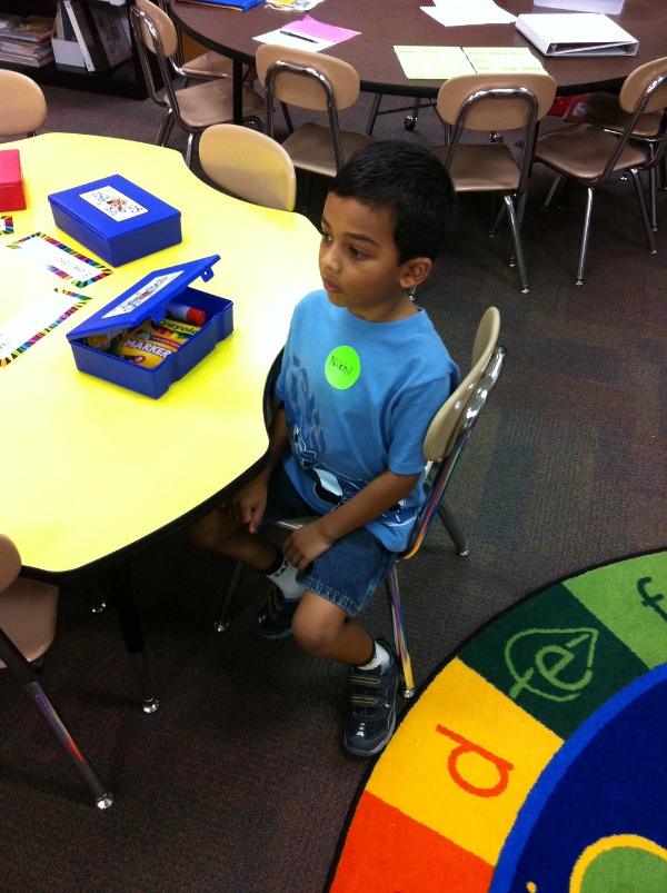 Aug 22nd, 2011 - The day finally arrived. My first day in Kindergarten at Mockingbird Elementary. Since the school starts early, my parents woke me up at around 6:30. I followed my usual routine of having my milk and breakfast, took a shower and got ready to go to school. Since it was my first day, I called my grandparents in India for their blessings. Since it was my first day today, both my parents came to drop me off at school. They also allowed the parents to drop us to the classroom. As soon as I walked in, the teacher asked me to wear my name tag. I then kept my bag in the cubby and my lunch box outside and went around the class. I found my chair and asked my parents to leave. I made a lot of new friends today, Amanda, Connor, Blake, Nico, Anu, Aromi, Madeline, Srikar, Vivek, Tanvi, Joshua and Radhika. The teacher made me draw a picture of something I did over the summer. We read a book called "Mrs Bindergarten is ready for Kindergarten". The other book we read was "Mama, Don't Go". I had lunch with Connor and Anu. I get to eat in the cafeteria. I had a snack in the afternoon with Blake, Connor, Aromi and Amanda. After snack, we played a game called Star Falls on the Smart Board. I got B as a match letters card game. Soon it was time to go home. We waited outside for our parents to come and pick me up. An exciting 1st day at school. |