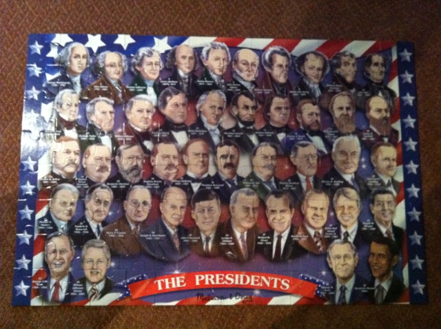 July 24th, 2011 - I declared today, July 24th, 2011 as the official Puzzle Day at our house. You may wonder what inspired me to do that. We had some friends over for dinner and one of my friends, Sameeksha and I took out a box of puzzles and completed about 4 puzzles and there were 8-10 more left so I decided to finish them all this today. These were puzzles about horses, dinosaurs, steam engines, musical instruments etc. I also pulled out my big world map puzzle which took me a while to complete. I then into my Handy Manny puzzle which is a puzzle with Handy Manny, Mr Lopart, Kelly and all the tools. I finished the puzzle day with the most difficult puzzle I have, the US Presidents. |