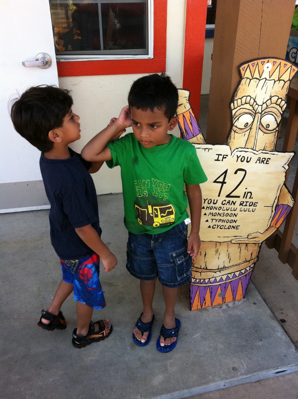 July 31th, 2011 - Today is the last day of July and my parents took me to a water park near our house called the Hawaiian Falls. My parents wanted to go there for a long time but we were just not able to make it. We went with my friend Sidharth and his family and my other friends Sachet and Sunchit and their parents. We first went to Jason's Deli for lunch and then headed to the Hawaiian Water Falls. We got there around 2 and it was really hot so we headed right to the Wave Pool (Bay Breaker). The Wave Pool is a nice place to just hang out and wait for the waves. If you are lucky to find a tube, you can have more fun with that. We spent an hour there and then went to Kona Cooler where you can take a walk. After the walk, we went to the place where kids my age and height can slide and have more fun, the Keiki Cove. There is a lot of water there and 3 big slides. |