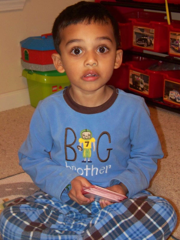 | | Nov 11, 2009 - Its been a few days since I am back from Des Moines and I am having fun being back in my own "adda" and playing with my toys. I like to play with all my toys and spend my day with the activity books, puzzles, cards and my all time favorite cars. When I return from school, I have my lunch and then Amma and I play with my toys for a while before I take a short nap. Once I wake up, I play with my toys again and once in a while, I watch a little bit of TV. My favorite shows are Caillou, Word World and Super Why. If daddy comes early then he plays with me as well. You may have noticed the change of clothes, its starting to get a little cold so you will see me wearing winter clothes for the next few months. |