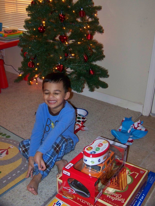 | | Dec 25th, 2009 - Every year, all the kids wait for Santa to come to their homes and give them gifts and I too was excited about today because I was hoping that Santa would come to my house and leave me some presents as well. You see, I have been "Nice" all year, well for the most part at least. I am a 3-year old boy and I would be lying if I said, I was not Naughty this year. I would say that I have been more Nice than Naughty so I should get the benefit of the doubt and if that does not work then my smile should make Santa come this way. I went to bed and left some chocolate for Santa under the Christmas tree. I woke up all excited to see if Santa had brought me the presents and after brushing my teeth, we went down to see. Lo and Behold, Santa has left many gifts for me and I could not control my excitement and I tore through all the gifts in no time. Santa got me a Jeep, some games and some candy. He also got my mother an iPhone too (I had asked Santa to bring my mother a new iPhone and he listened to me). I called Ayush Anna and he too got many gifts from Santa. Santa is so nice to bring me and all the kids toys every year. When I grow up, I will help Santa deliver the toys. and in case you were wondering.......Santa did eat the chocolate as well. If he eats at everyone's house, no wonder he has such a big tummy!! |